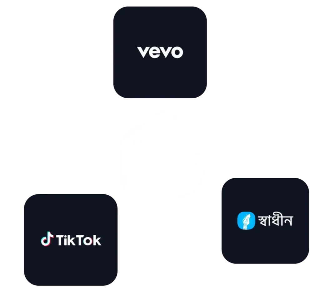 Join the world’s leading artists, labels and music companies thriving with P TUNE STUDIO. As a preferred provider for TikTok, Vevo, and the local DSP Shadhin Music, we help you succeed in the Music 3.0 era—maximizing your catalog’s potential and expanding your global distribution reach.